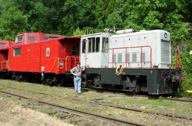 Despite the fact that the Co-Op never owned the track, at one time it owned a locomotive and two cabooses, all shown here near the J.G. Bradley Campground.