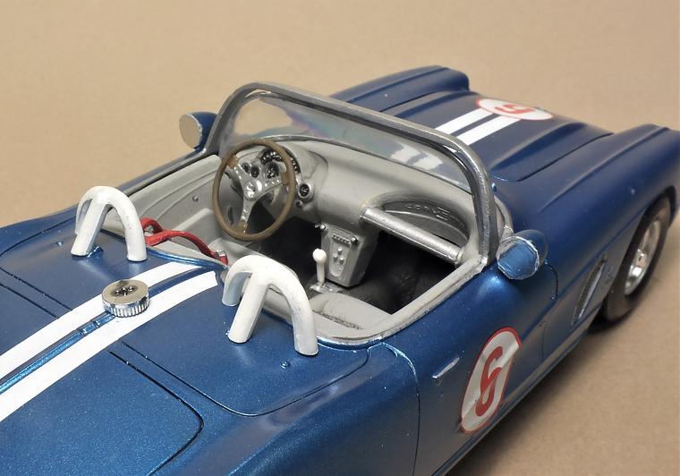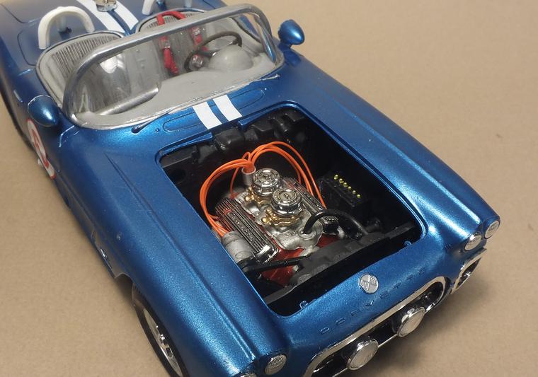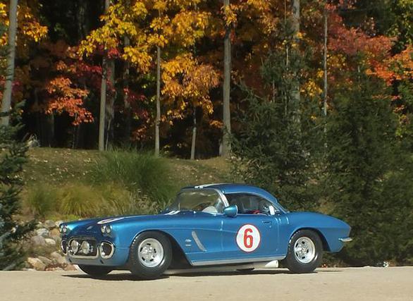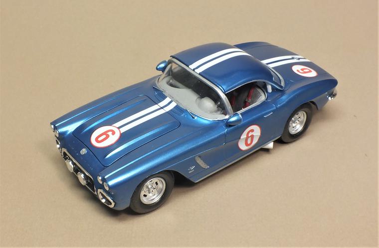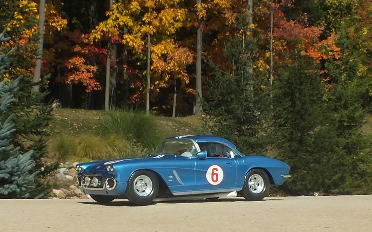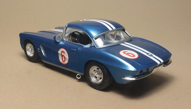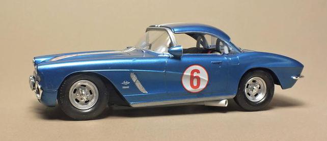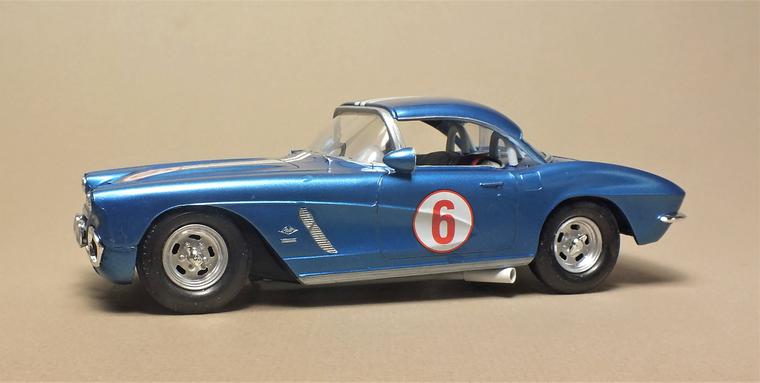 Model Notes: The kits used for this model offered a number of challenges. The most notable were the poor fit of the clear 'glass' windshield and the overall poor fit of the hardtop. These AMT 1962 Corvette kits are 'Level 2' which means they lack underbody and under hood detail.