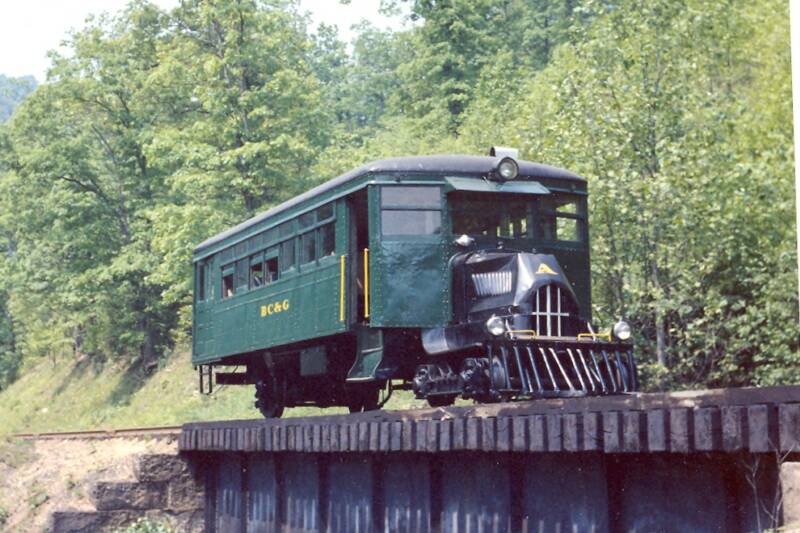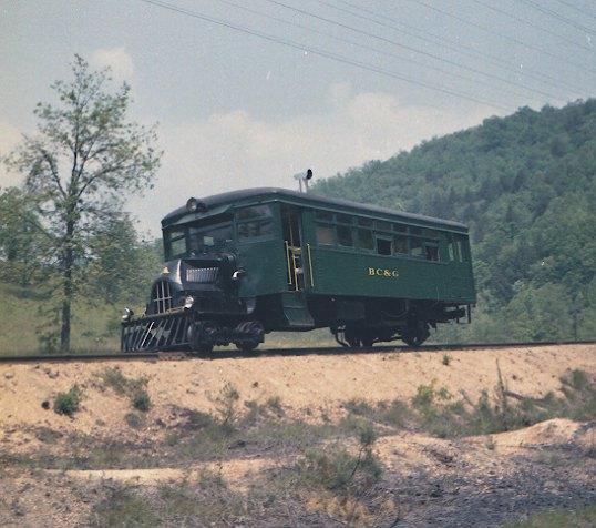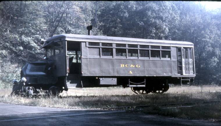 Motor "A" was at the Strasburg Museum in Strausburg Pennsylvania, painted in a rather gaudy yellow and green scheme, but otherwise pretty much in the configuration of when it was on the BC&G when this photo was taken in 1990. The bus is now at the Pennsylvania Railroad Muesum.