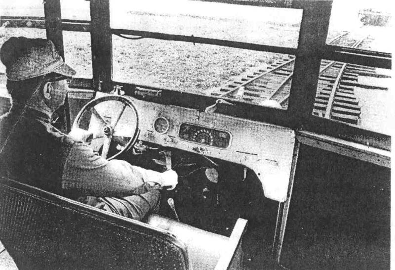 What's particularly interesting is that the driver has his left hand on the hand brake wheel the way you would hold a steering wheel. It probably was impossible not to! His right hand is on the air brake stand. The transmission shift lever is below his right hand. According the Milepost article, the transmission had 4 speeds forward and 4 speeds in reverse. Maximum speed was 30 mph and fuel economy was 14 mpg according to the 1922 Car Builder's Cyclopedia.