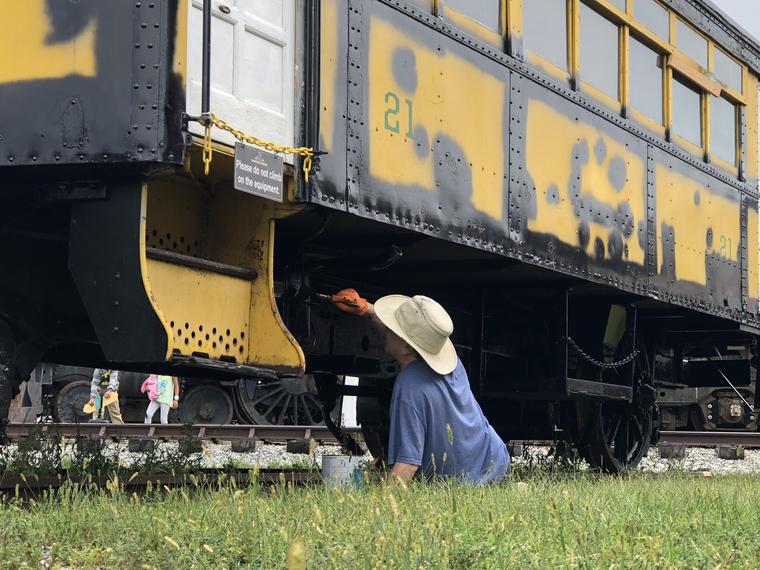 Per Wayne Laepple: "Here, finally, is a photo of the Mack railbus today. Over the past several weeks, my Saturday volunteer crew gave it a protective paint job. It's not tuscan red, but it will help conserve it for now. The Friends group is considering sending it off-site to be restored in the next year or two, if they can find a shop able to do it. (11/3/21)