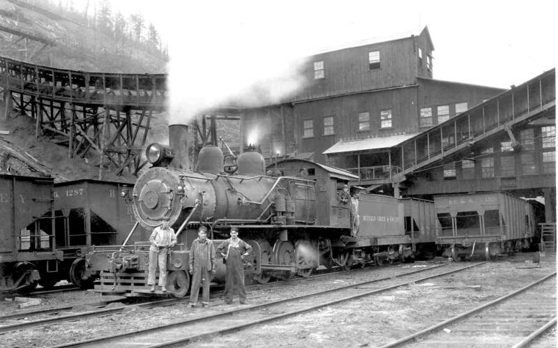 Martin Hansen has confirmed via the Baldwin Locomotive Works Records Of Construction Numbers that BC&G #2 was built in October 1911 as c/n 37163 and sold new to the BC&G. This is new information as most sources show #2 was acquired second hand from the B&O. This photo of #2 in front of the Widen powerhouse was perhaps taken soon after the enqine was acquired, as the mine was opened in the same year the engine was acquired, 1911. #2 joins #4 as the two rod engines purchased new for the railroad.