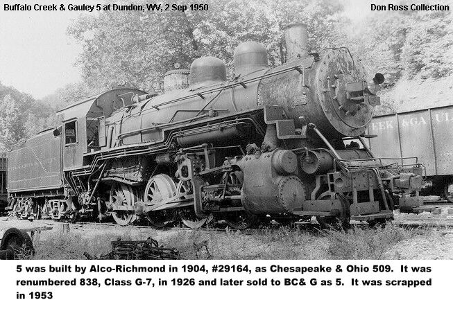 According to Karen Parker, C&O Historical society, the engine came to the BC&G in July 1933 for $4000. It was not scrapped until 1953.