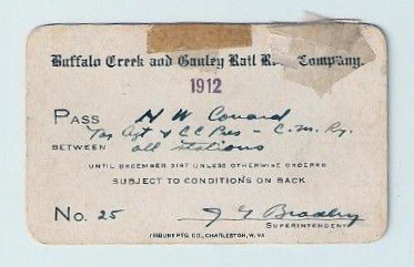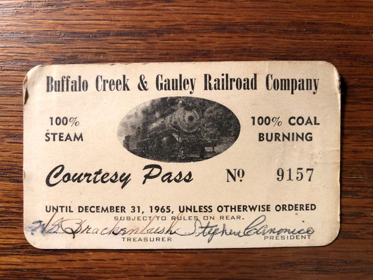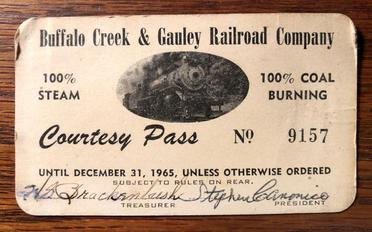Steve Canonico sent along this Courtesy Pass, signed by his father who was president of the Clinchfield Coal company at the time it purchased the Elk River Coal & Lumber Company in 1958. Steve provided the following detail: