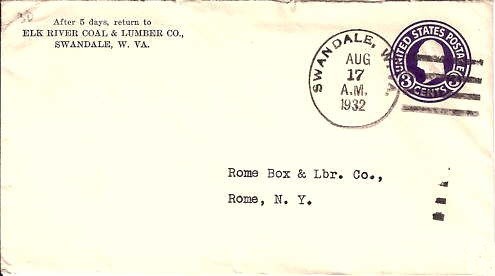 Here is what the ERC&L stationary looked like in 1932. One can only imagine that perhaps this envelope contained an invoice for lumber sold to the Rome Box & Lumber Company. I wonder how big the order was.