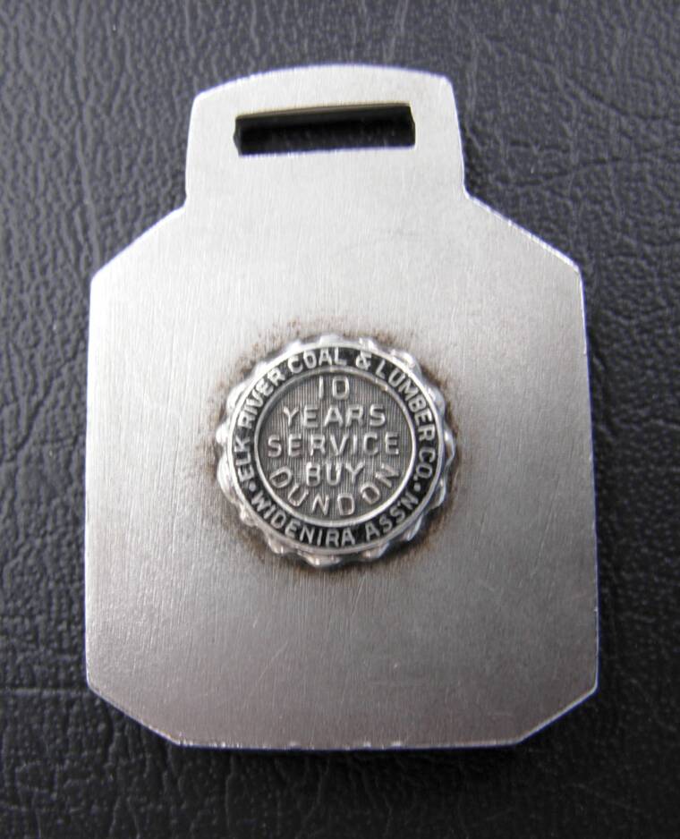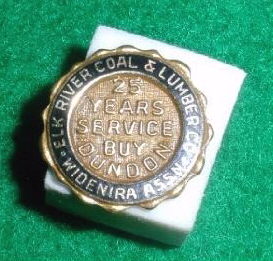 ERC&L 10 YEAR SERVICE PIN KEY FOB - Frank Criswell purchased this interesting piece on Ebay. It is an ERC&L Widen IRA (miners) Association 10 year service pin attached to a key fob. The insignia is very similar to the 25 year pin near the top of this page.