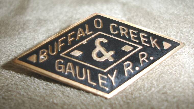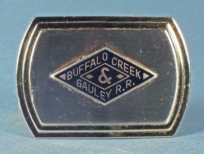 This belt buckle, in beautiful condition, was originally owned by Bobby Caruthers and Bobby gave it to Cody Burdette many years ago. Cody recently generously passed it on to Brooks Stover for his collection. The buckle measures 3 1/4" x 2/14". The diamond BC&G logo is inlaid black enamel in a brass-colored surround. IIt appears that the logo might be exactly the same as the logo on the hat pin and key fob above. The center of the buckle is silver/stainless and the perimeter of the buckle is also gold colored, likely brass.