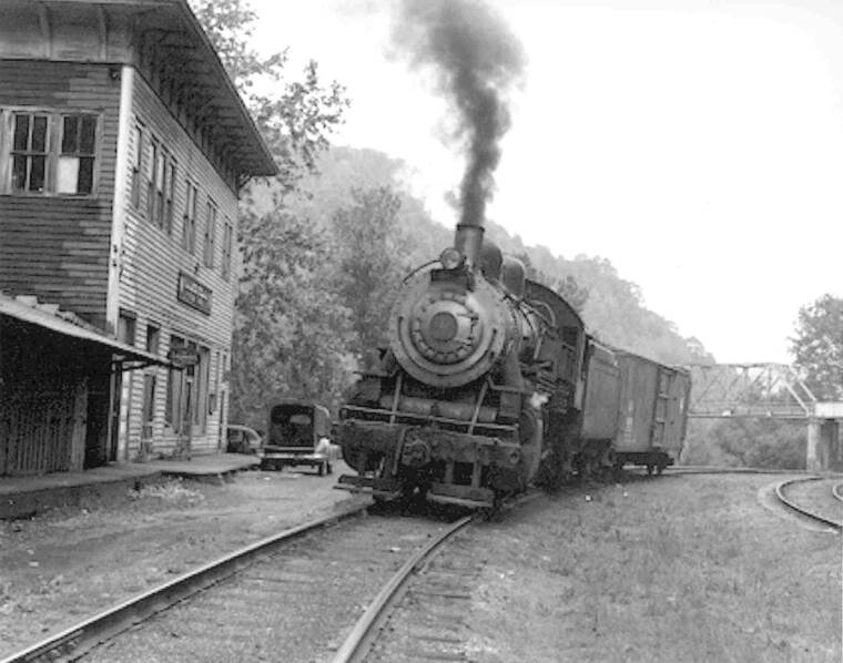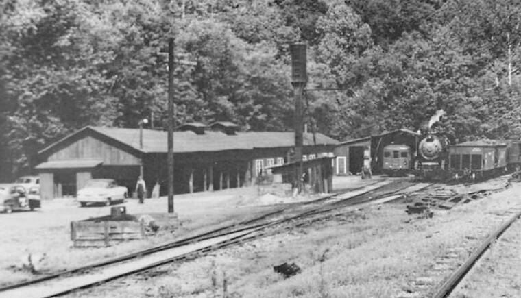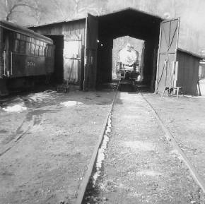 "Here are a couple of slides from a trip I took to the BC&G around July of 1962. I got to the Dundon shops early in the morning just as #14 was emerging from the engine house and three or four crewman prepped the engine for the day's run. As always, the engine looked great! Then later that evening the air was muggy and the crickets were really going at it, but I stuck around until they put the engine back in the engine house for the night. There was just enough light from the setting sun and the dim lights of enginehouse that even without a tripod I was able to capture an acceptable image. It was a great day of railfanning, to be sure!"