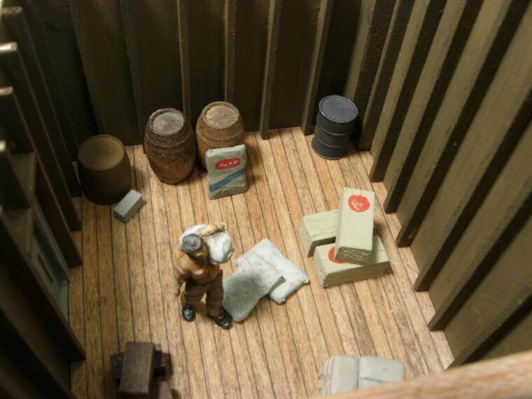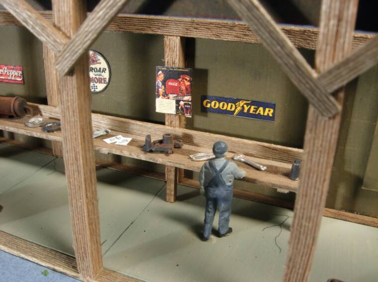 One of the fun things about prototype modeling is finding little scenes and reproducing them, scenes that you might not be able to think up yourself. Who would have placed a wooden folding step ladder in a work scene like this? I assume the tank holds compressed air for power tools.