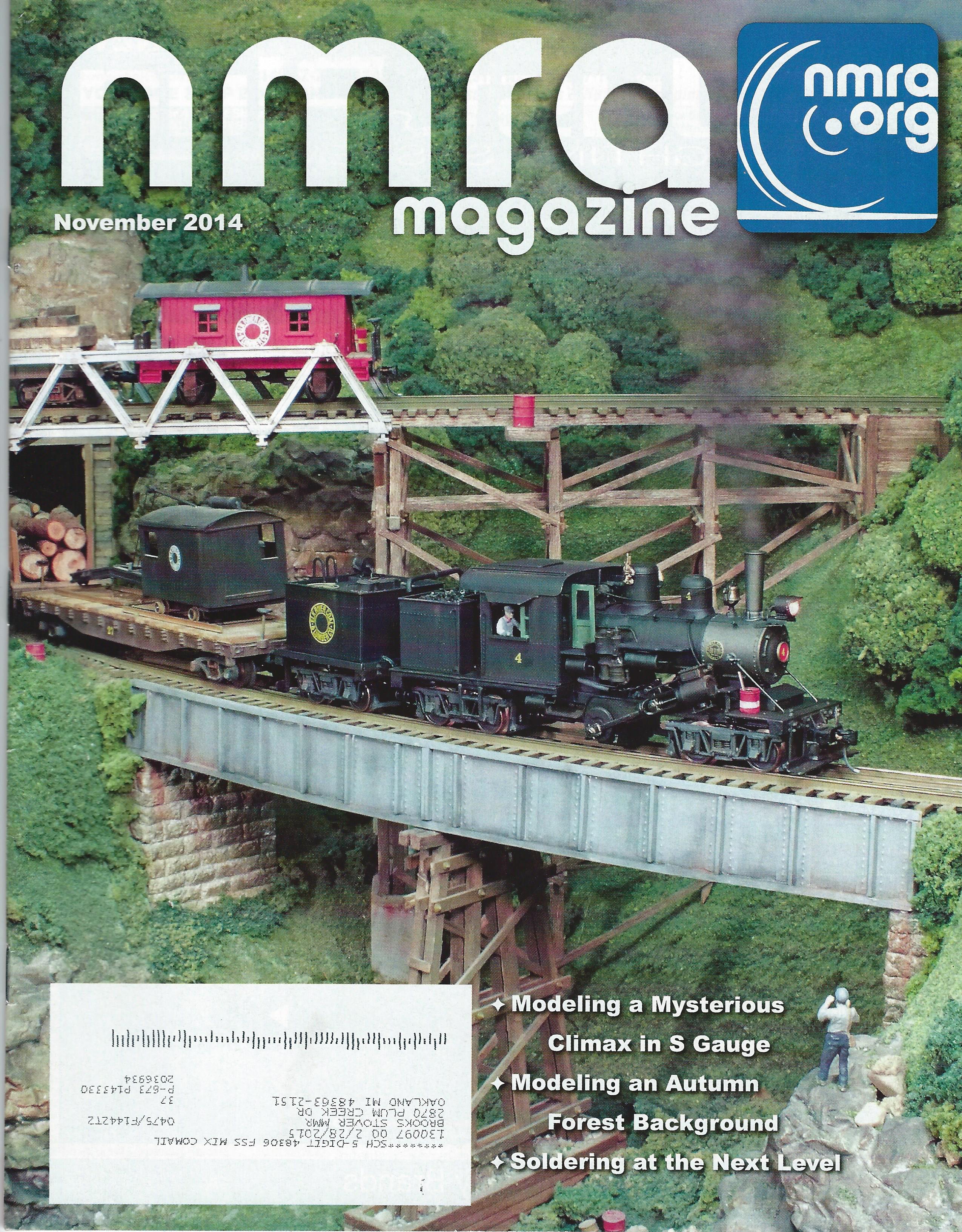 The November 2014 issue of NMRA MAGAZINE included an article on how I built a model of ERC&L 3-truck Climax #4 by modifying a Bachmann On30 2-truck Climax.