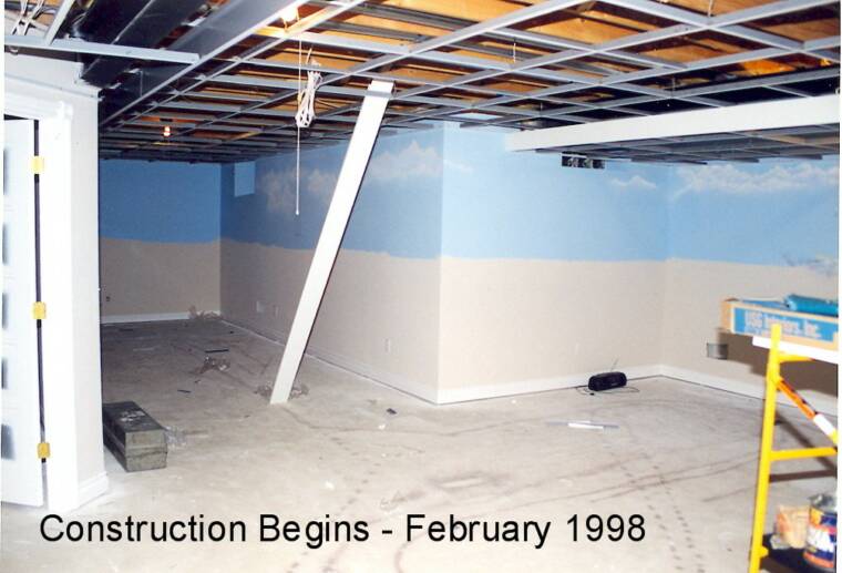 This is the way the room looked at the beginning of construction. Notice that the sky has been painted but the carpet is not yet down. The ceiling and lighting is under construction. Compare with Photo 1!