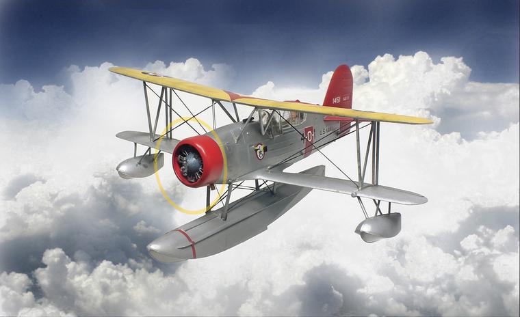 CURTISS SOC-3 SEAGULL - The Revell Arizona kit came with Curtiss Seagulls on the catapults so I found a 1:72 scale kit of a Seagull made by Hasegawa to display next to the Arizona on the shelf. For more photos of the Seagull model and how it was built, click here.