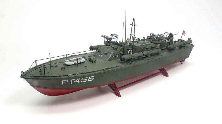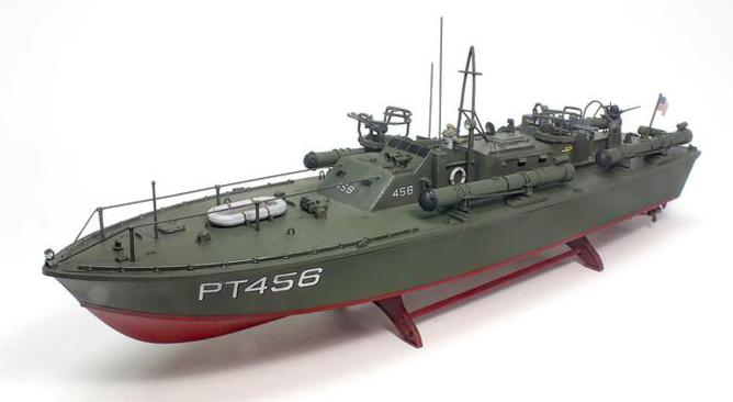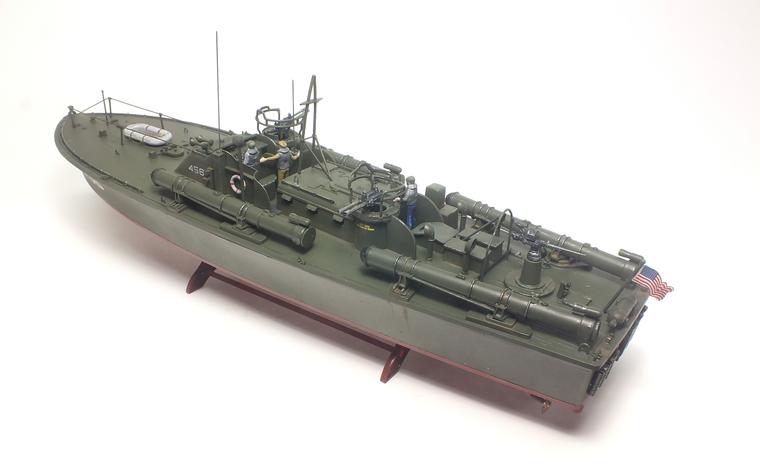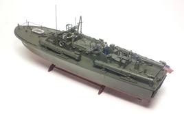 PT POAT - This 1:72 scale model was built from a Revell kit issued in 1999 although the date on the instruction sheet is 1987. Brass wire was used to make the whip antennae and brass handrail stanchions from an S scale diesel locomotive and brass wire were used for the handrail on the bow. All the other detail is from the kit. There were about 540 PT boats built.