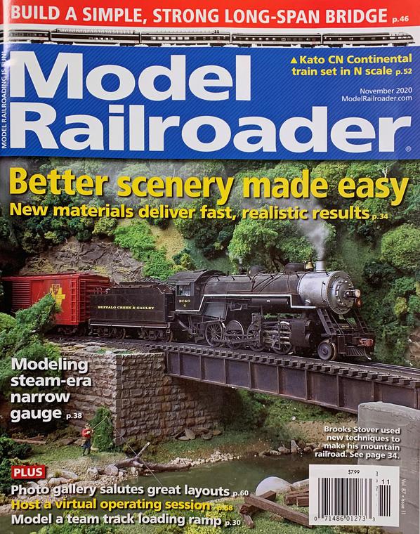 An article about the scenery techniques used on the new layout appears in the November 2020 issue of MODEL RAILROADER. BC&G #4 crossing the Sand Fork Bridge is featured on the cover.