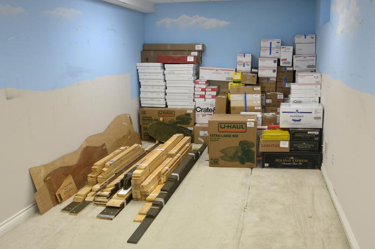 The 'big' layout was disassembled over a period of several months. All the locomotives, rolling stock, structures, figures, motor vehicles, trees and scenic details were packed and carefully labeled. The lumber from the benchwork was cut to size for the new layout, marked and bundled as well. Lumber and track that wasn't going to be used on the new layout was donated to other S gaugers.
