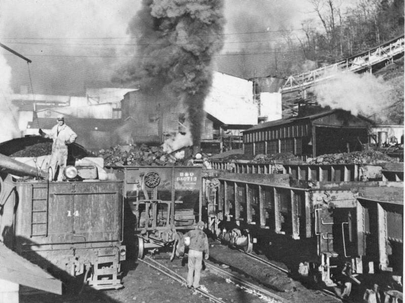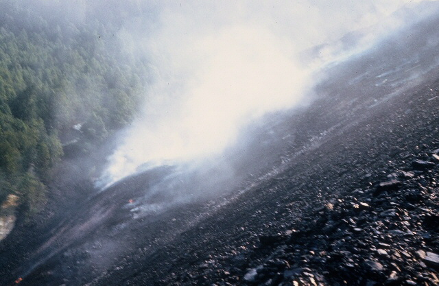 The three color photos here were taken by Mr. Roland Coluzzi, Sr. and were provided by Roland Coluzzi, Jr. Roland Jr's. mother was born and raised in Widen. Roland, Jr. grandfather worked in the Rich Run Mine. Roland, Jr. spent many summer days in and around Widen. These are rare color pictures of the gob train in action and the actual smoldering gob.