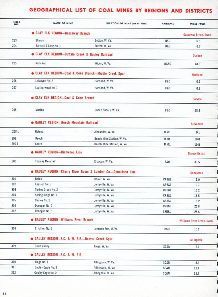 Ed Kirstatter, a B&O enthusiast, has provided this map and the two pages below that came from the "B&O Directory, Coal Mines & Coke Ovens, Located on the Baltimore & Ohio Railroad and Lateral Lines - 1957. This 104 page document provides some interesting insight into where other mines were located near the Rich Run Mine and the type of coal mined in each. Notice that the coal from the No. 5 Block Seam (Clay County) had some very desirable characteristics. The two pages from the directory can be read by clicking on them to enlarge them.