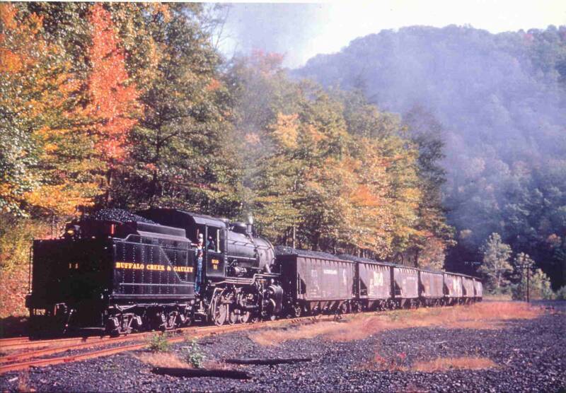 Cody Burdette recalls that his father, Theodore, said one time "that the train going down the Elk River to Charleston would be made of all BC&G coal cars and that these cars would return empty from Charleston to Dundon. He said the train would be going so slow that some people who lived trackside would hop on the cars and roll lumps of coal off the cars. That way they got a free coal supply. He also said he had seen whole train loads of coal covered with green moss going down the Elk River as the Great Depression began to loose its grip on the nation. The loaded hoppers had set on side tracks so long that moss had begun to grow on it."