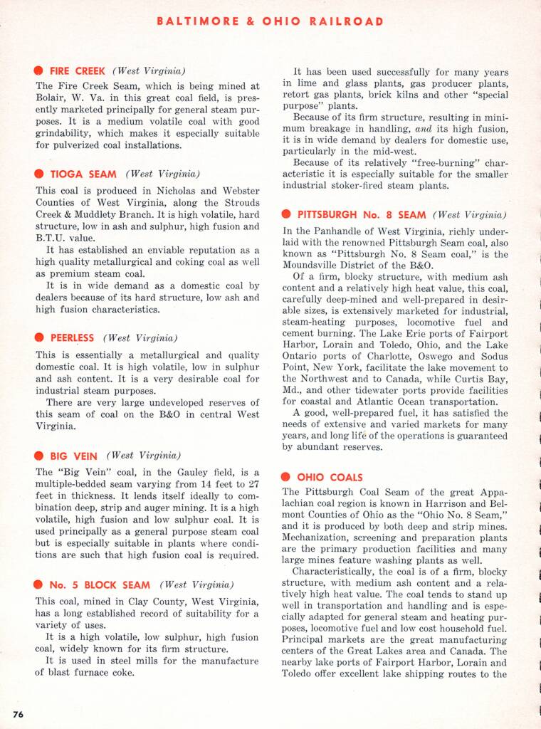 To the right is a sheet from the B&O directory that describes the different types of coal from the mines served by this section of the B&O. It can be enlarged by clicking on it.