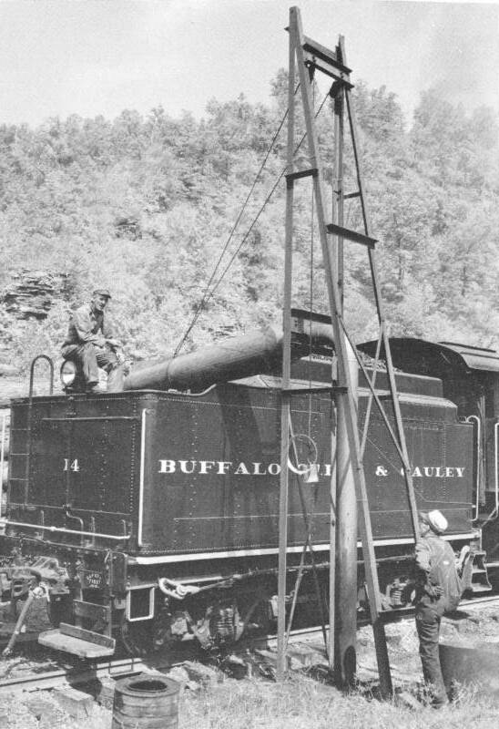 According to Richard Manning, the BC&G engines were coaled by running them under the tipple. I have never seen a photo of this operation. I have seen photos of a coal hopper and a belt loader in Dundon Yard. It may be that after the mine closed in 1963, the engines were coaled in Dundon.