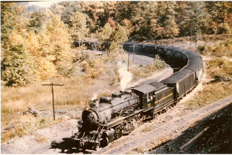 It is not clear whether the engine waited in Widen while the hoppers were loaded or whether the loaded hoppers were waiting on the makeup track. I doubt the tipple could hold 60 cars of coal and it would take hours to load 60 cars, I would think. I suspect loaded outbound hoppers were waiting.