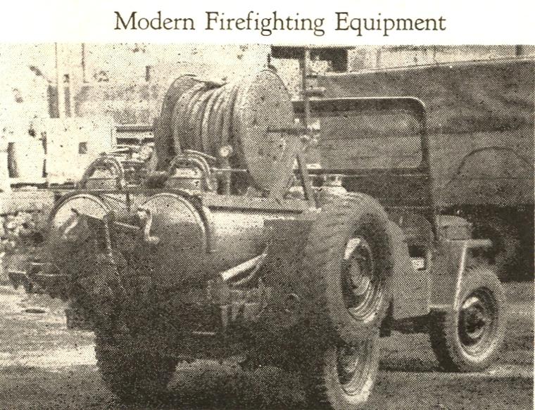 This fire-fighting jeep was modeled from a photograph that appeared in a local newspaper in Widen, WV in the mid-1950s. The caption announced the acquistion by the local coal mine of a piece of "Modern Firefighting Equipment"...a jeep with a couple of tanks for water, a large reel of hose and some kind of pumping mechanism.