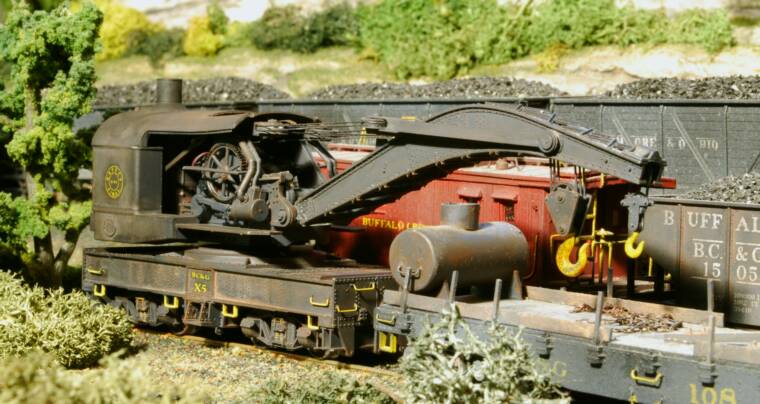 Crane X-5 and Flat #108 - Phil modeled X-5 using a Tichy kit and modified a flat with the appropriate equipment to represent flat #108.