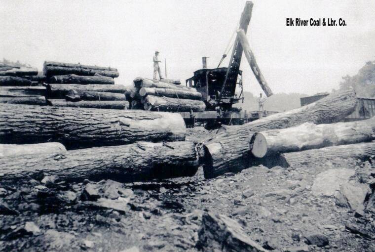 To the left is an enlargement of a portion of an early photo of the Swandale log pond from Elvin Frame's collection that also shows the steam-powered version of the American loader.