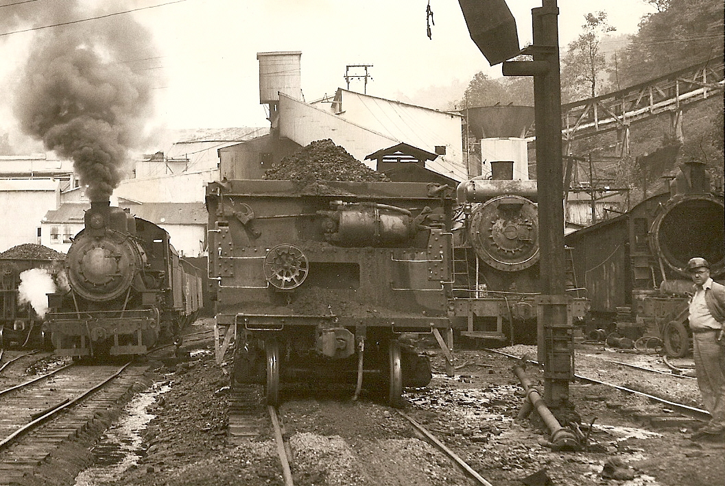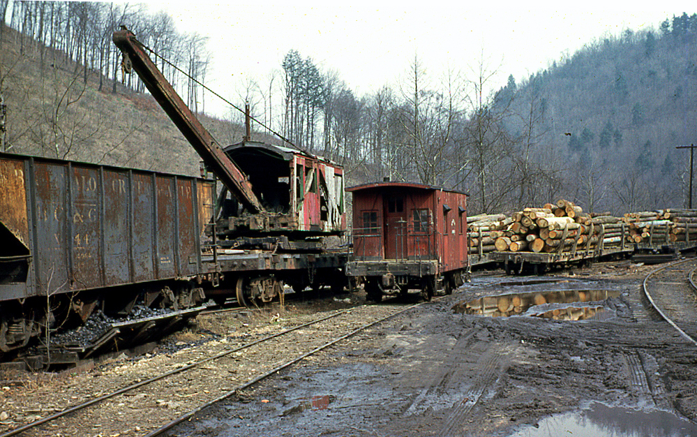 The date and photographer are unknown, but this photo shows all the detail on the end of the Clark side-dump gondola. It also shows how full the cars were apparently loaded. Also of interest is how this photo captures the overall scene at Widen...not exactly a place you'd want to be walking around in!
