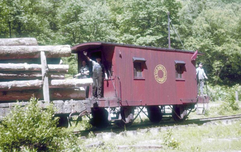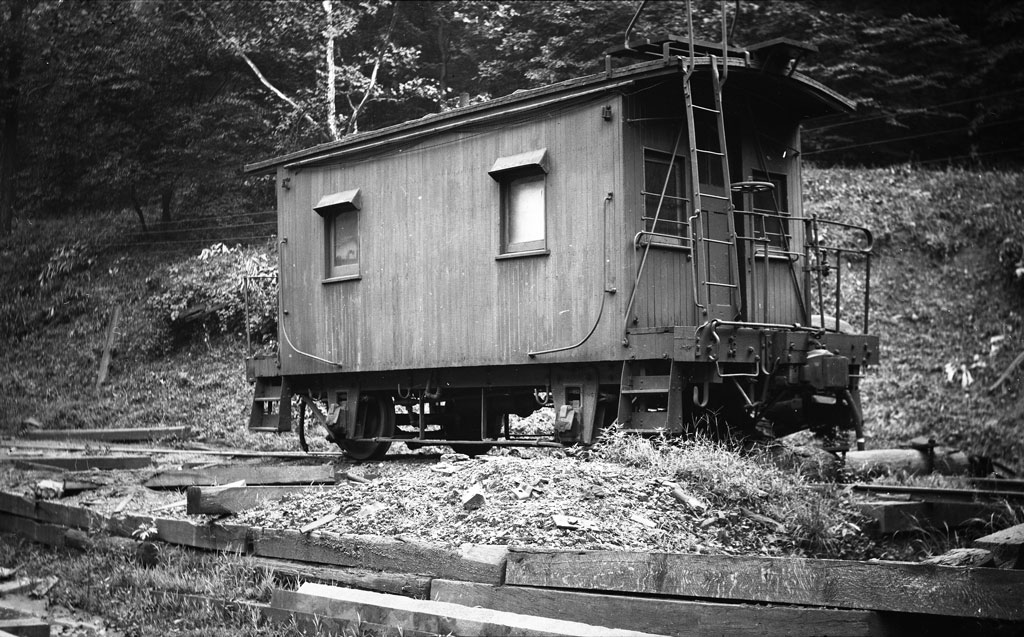 In the summer of 1958, James Greene visited the BC&G and captured this image of Raymond Davis' caboose. In this view the caboose appears to be in very good condition, even if not painted.