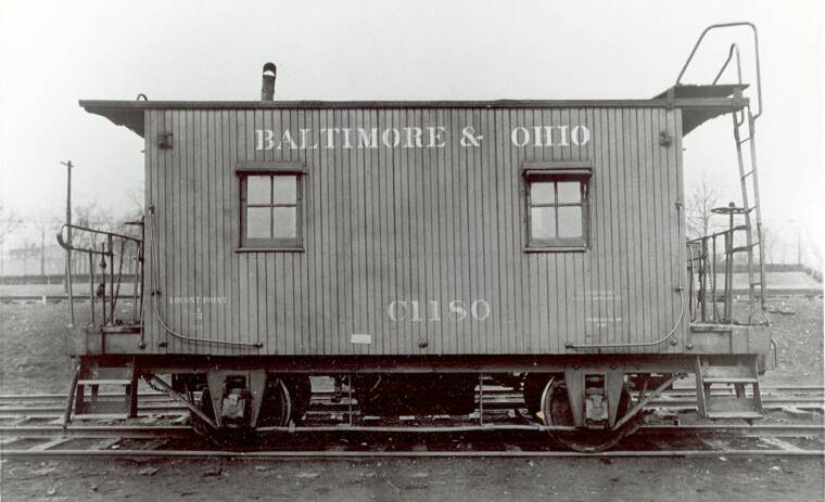 Cody Burdette notes that according to the book COAL & COKE RAILWAY by Alan Clarke, that road had twelve 4-wheel cabooses that looked like this one. By January 1922, the B&O had taken over the C&C and renumbered the cabooses C1700-C1711. Further, the book says that the cabooses lasted until 1934 when the first was scrapped with the last being scrapped in 1954 "although one was sent to the BC&G and served on that line until its demise." That this is an ex C&C caboose is further reinforced by the curved side grabirons. It would have had a 13'-3" wheelbase and a length of 21'-1 3/4".