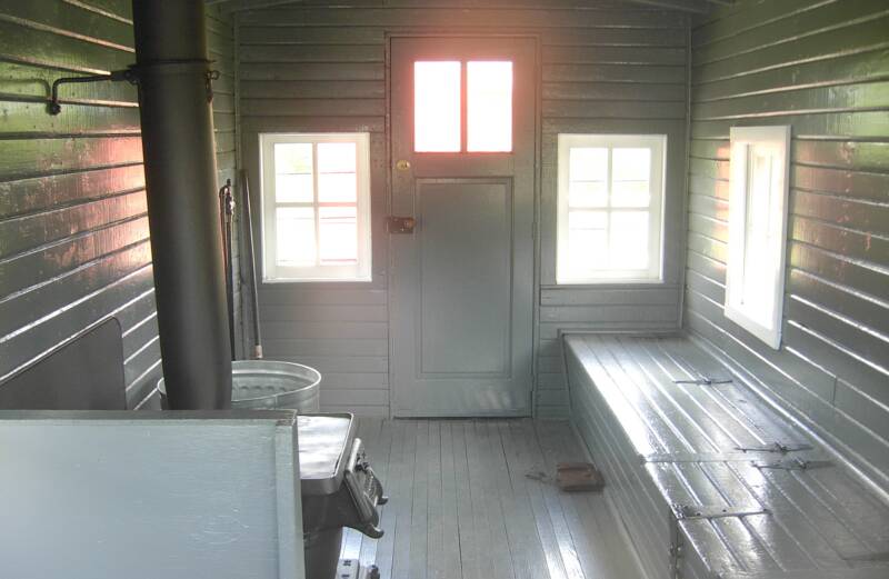 Cody says this photo of the interior of the caboose brings back fond memories. Whenever log crews were stranded in the woods due to breakdowns, weather or other delay, the caboose provided a warm refuge where hot coffee and food were available