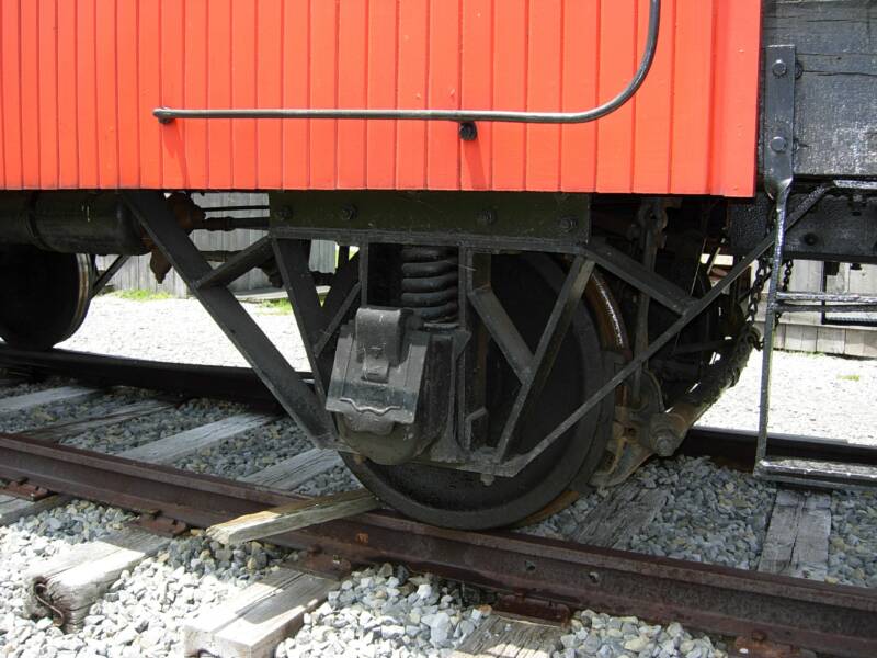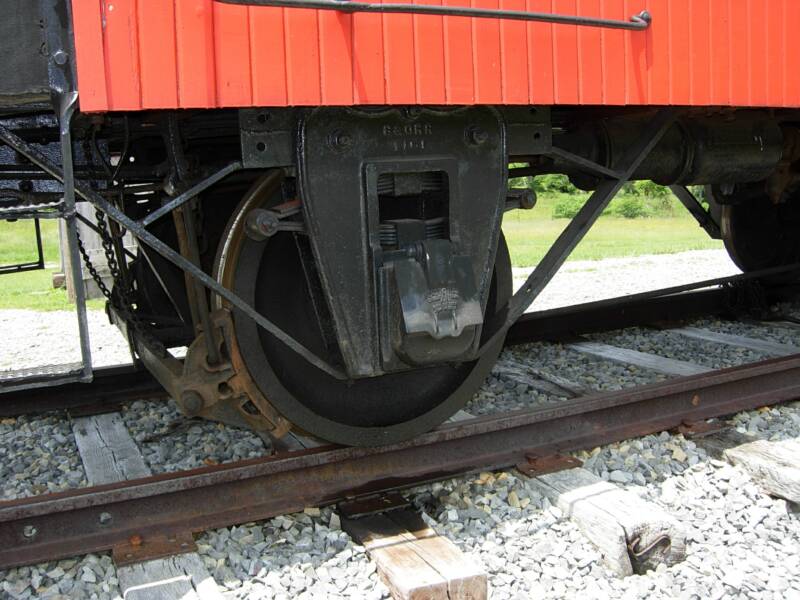 One very interesting observation was made while inspecting the caboose at Cass. The structure supporting the axles at the two ends of the car are not the same, as shown in the two photos below. One end has a primarily cast bearing holder while the other end is fabricated from strap iron.