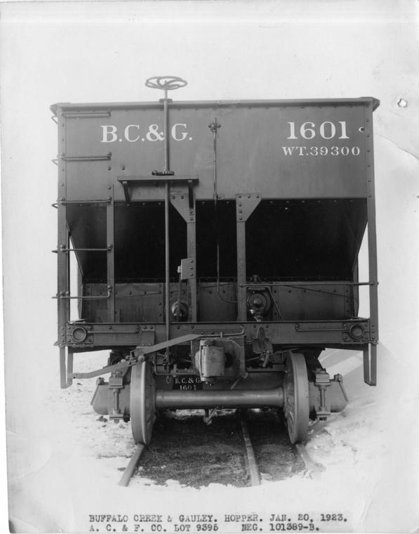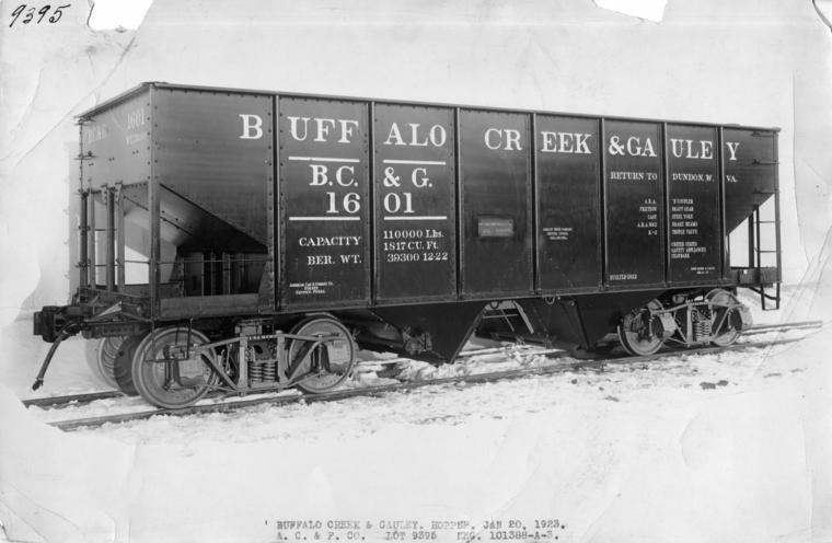 "In the early part of the year 1920 the Buffalo Creek & Gauley Railroad hopper cars were released from the Eastern Railroad Coal Car Pool by the dissolution of the Car Pool, but the general railroad disorganization and the general shortage of coal cars tended to keep the BC&G cars on foreign roads so that very few of them came on the home tracks. To make up for this the Car Service Division of the AMerican Railroad Association forced the B&O railroad to give the BC&G an arbitrary daily supply without which it would have been impossible to have maintained a steady flow of coal traffic. There are now but 596 of the original 600 hopper cars, 4 of them having been destroyed on foreign roads as follows: