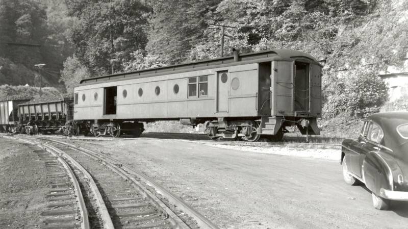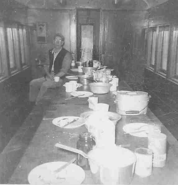 The photo on the right was reportedly taken while the car was in use as a crew dining car during the rebuilding of the Sand Fork bridge after the dynamiting in 1952. I wonder what was for lunch?