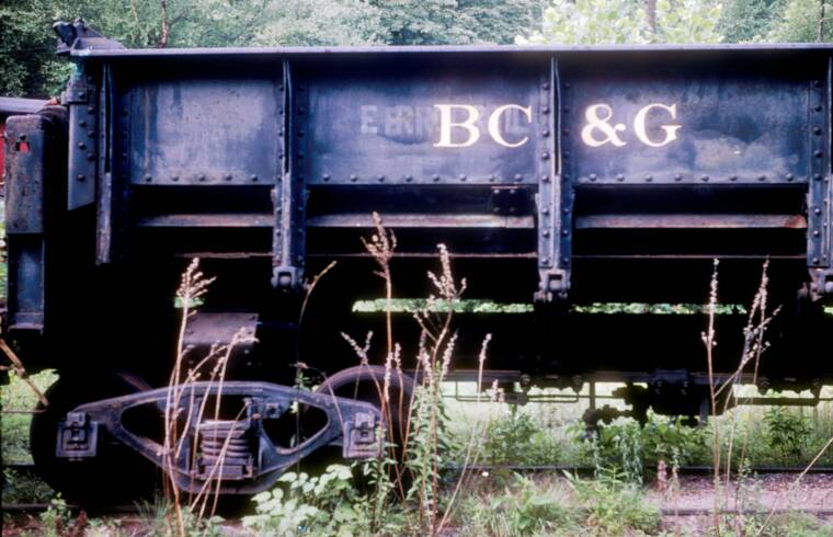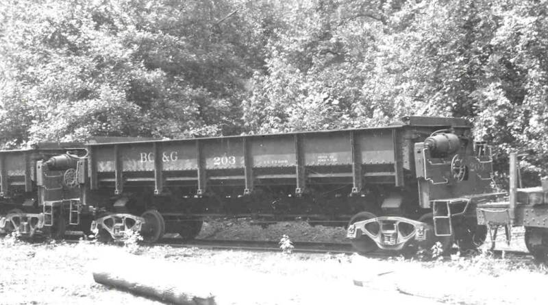 The ERC&L had about 30 Clark air-dump hoppers for use in gob service. A few of this type of car were lettered for the BC&G and used in MOW service. According to the Registry, as many as 16 were used by the BC&G in 1953.