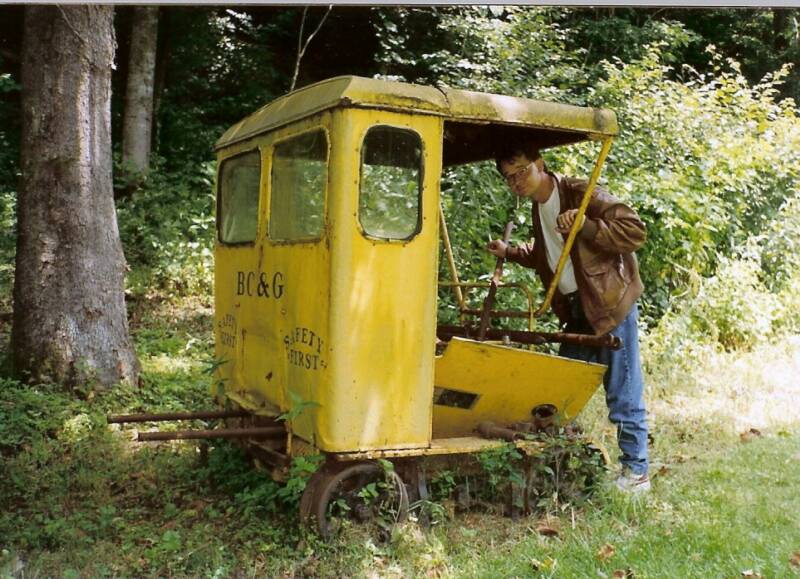 These photos of a BC&G Fairmont speeder were provided by Doug Andre. They was taken sometime in the 1980's. This is the only color photo I know of that shows a BC&G speeder in this much detail. The young man in the right hand photo is Brent Legg.