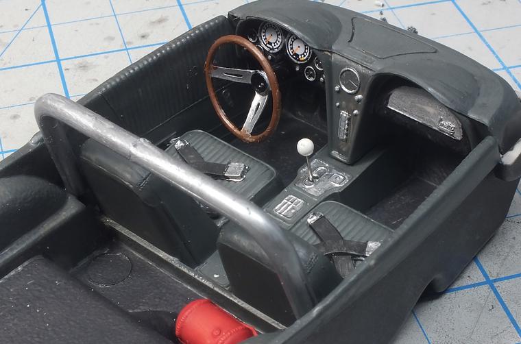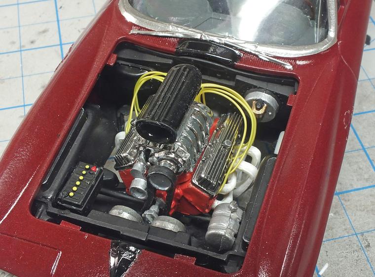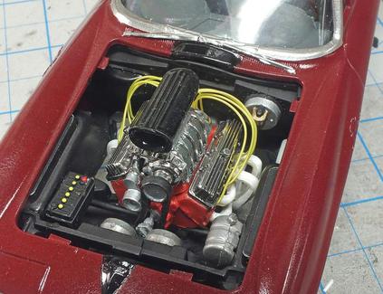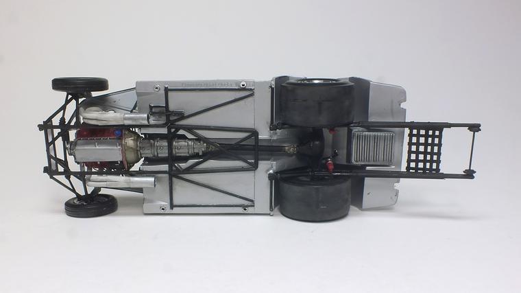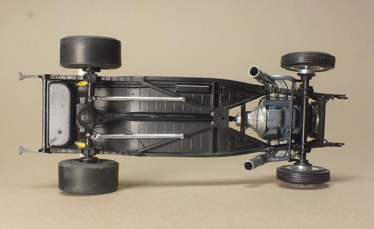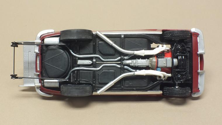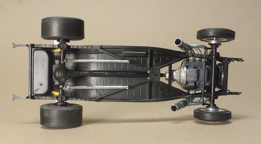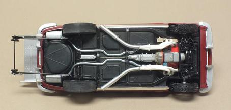 Since the production exhaust is molded into the underbody, the model was built as if these are still useable for street use via cutout valve. The headers are 'powdercoated' white.