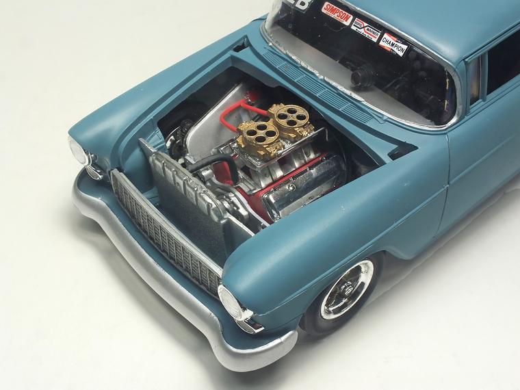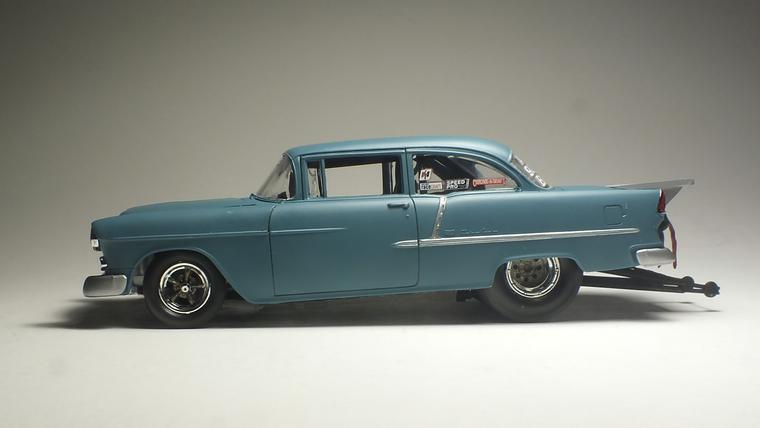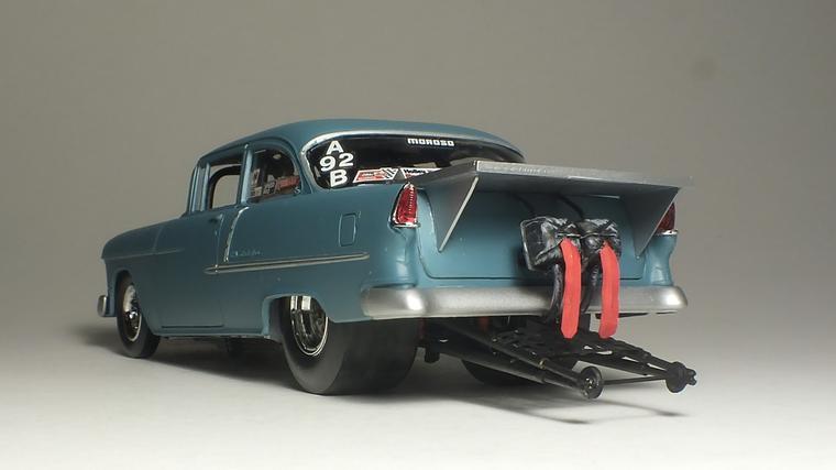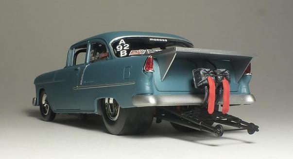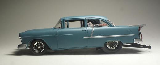 This model was inspired by the 1955 Chevrolet "Big Tire" street-legal drag car built by Dennis Taylor for his daughter Alex. The car runs 1/4 mile in under 7 seconds at over 200 MPH. Alex Taylor is featured on Motor Trend TV's HOT ROD GARAGE show and she has a YouTube channel with many images of the car.