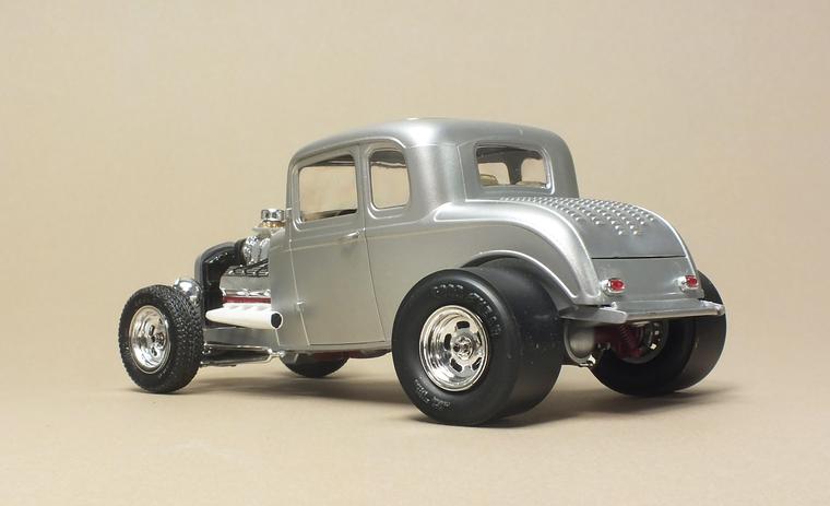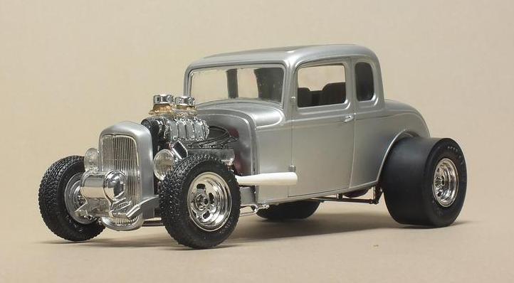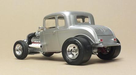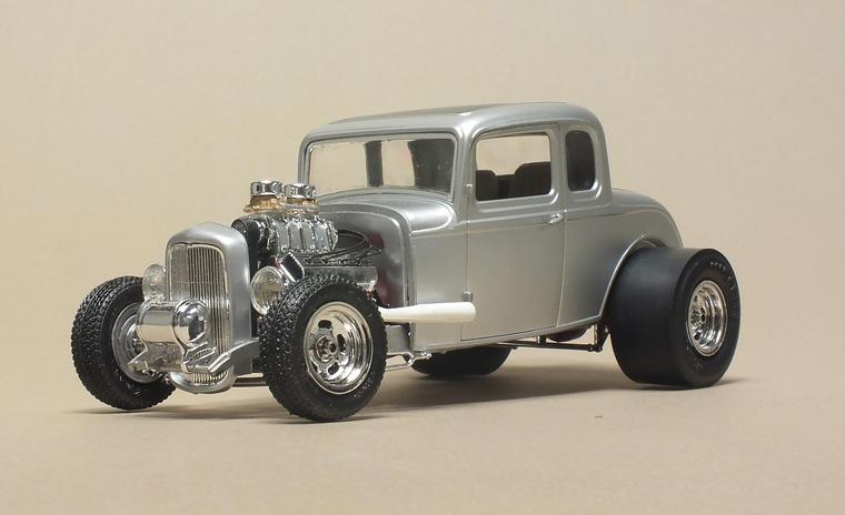 I've always liked the aesthetic of big slicks on a channeled '32 and a Hemi shoe-horned in the engine compartment. This rendition was built from parts from several kits. The body was channeled over the frame and all the interior trim panels modified accordingly. With a stock height roof, it's a comfortable ride. Who wouldn't enjoy cruising the drive-in in this little coupe...the coolest car at Belmont High!