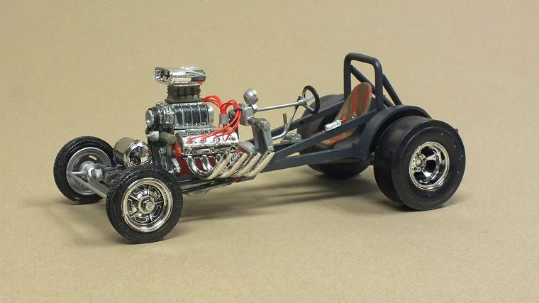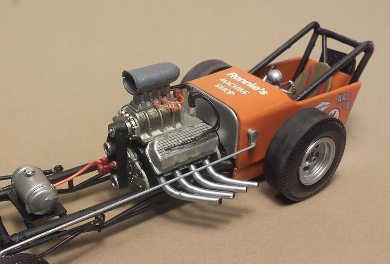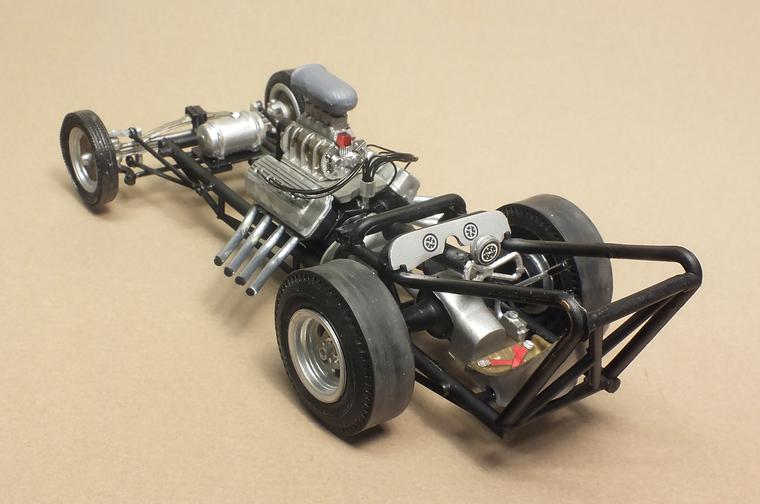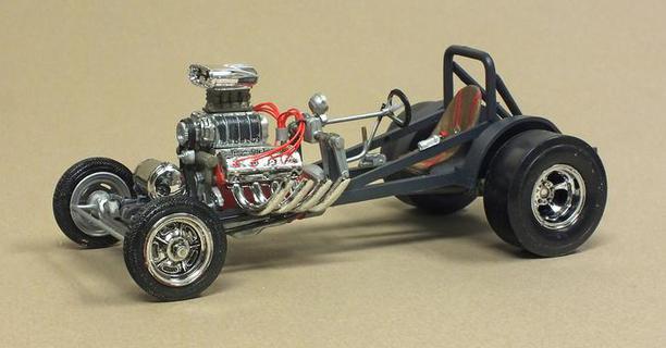 Growing up, my interest in automobiles was stoked by my interest in racing of all kinds. While I attended a few sanctioned drag races, never as a participant, I read HOT ROD and other magazines, always fascinated by the little cars with big engines that were there. Besides the power, the aesthetics of monster blowers and fat slicks struck me...and it's been fun to capture it in miniature. I can't imagine sitting behind a 800 hp engine in a car with a 100" wheelbase!
