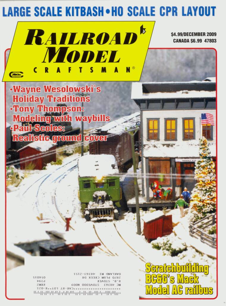Phil Bonzon took this photo of Christmas in Swandale on his layout. The photo appeared on the cover of the December 2009 issue of RAILROAD MODEL CRAFTSMAN.
