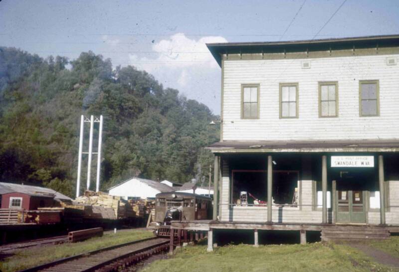 "The train had a passenger coach in front of the caboose and one of the fringe benefits (of being the doctor's wife) was a pass for the train. This was during the depression and the train did not run on schedule. When there was a load of coal, or empties to return, the passenger train would not run. So, if I wanted to go to Dundon or Widen I listened for the whistle; while water was being loaded at Swandale, I had time to get to the train. When I went, I didn't know when I would get back!