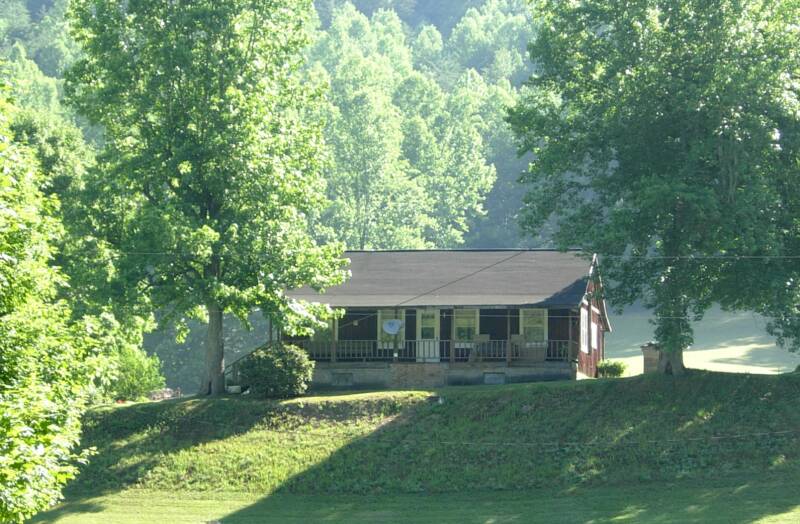 During a 2007 conversation, Roger Nutter, BC&G Co-Op President, indicated that the house was destroyed by fire set by vandals. According to a 1977 issue of GOLDENSEAL the house was still standing in that year. This photo might have been taken from the road . The line of large poplar trees is still in place although nothing remains of the house.