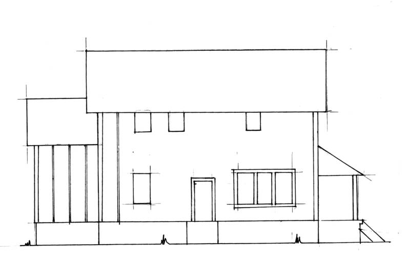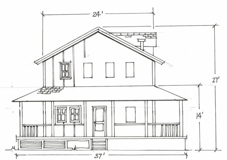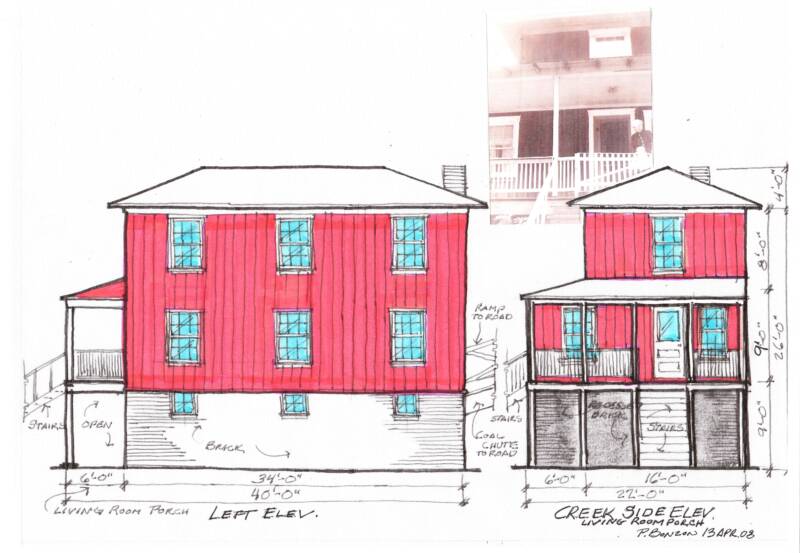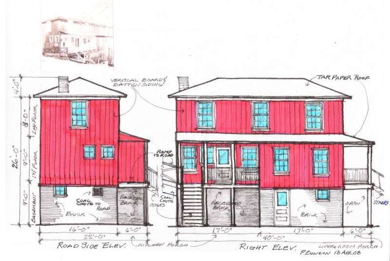 Phil Bonzon's sketches of a typical ERC&L one-story company house. These were constructed in Dundon, Cressmont, Swandale and Widen although the houses in Dundon and Swandale had front dormers.
