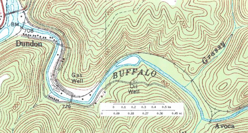 A VERY special thanks go to Herald Baughman and Phil Bonzon for working together to create these accurate maps of lower and upper Dundon as they were in the late 1950's. Herald, and his wife Patsy, provided Phil sketches of the area identifying the residents in all the houses and the other key structures. Phil then meticulously transferred the information to a topographical map of the area. It doesn't get any better than this! Thanks Herald, Patsy and Phil! These maps are certainly the definitive record of Dundon during the 1950's! Farther down the page is the topographic map that Phil used as the basis for his very nice overlays.