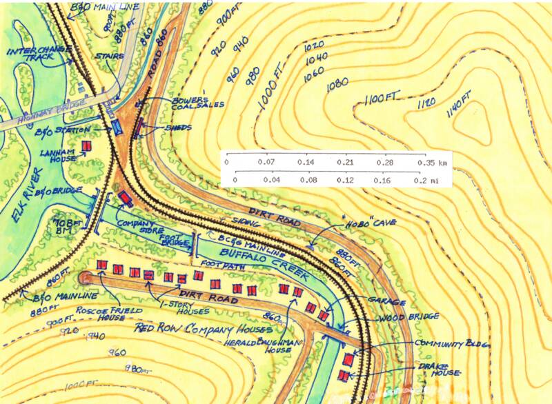 COMPANY STORE - The ERC&L Dundon company store and the B&O truss bridge over the Buffalo Creek