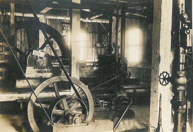This photo shows what Cody Burdette believes to be the machine shop of the sawmill. It was located on the lower level of the mill. The undated photo is from the collection of John Beam. Do you suppose that is asbestos wrapped around the overhead pipe in the distance?