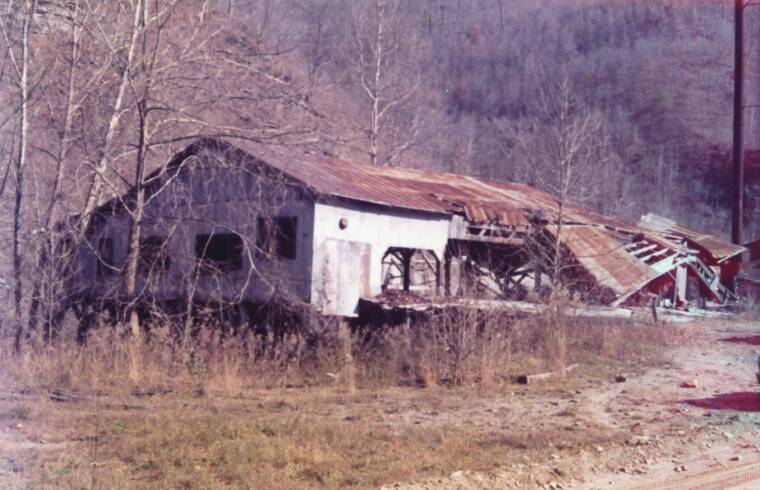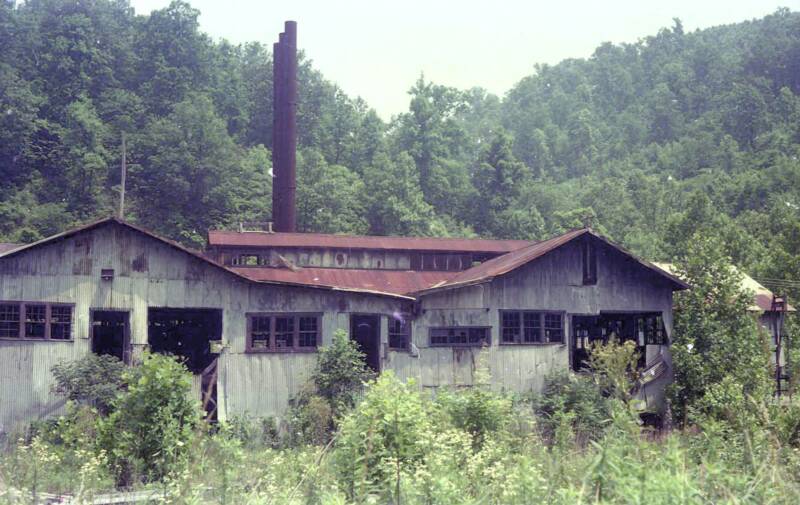 All the ERC&L facilities at Swandale deteriorated rapidly after abandonment. The three photos above and left, taken by Mike Ashley in 1973, indicate that the company store was already gone although the feed store still stood. The photo above shows some of the construction of the engine house. The two photos below by Bob Slavy were taken a in 1974.