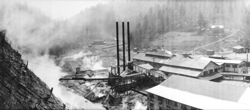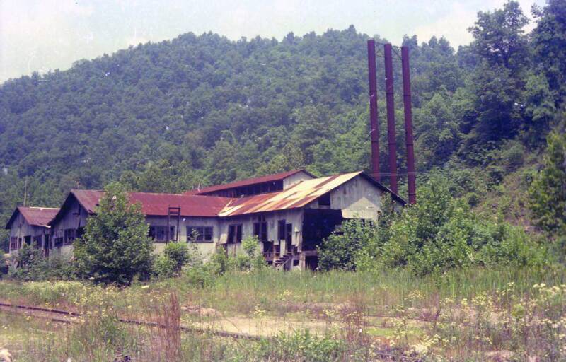 John Phillips took this photo in May 1963, just a couple of months before operations at the Rich Run mine ended, but it's clear that the new owners had changed operations at the mill. By now the log pond had been drained as logs are piled in the area where the pond had been.
